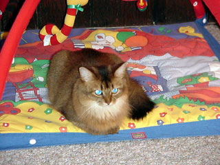 ![]() Gigi was about a year old when this photo was taken but she still climbs on those shelves to be with the stuffed animals. |